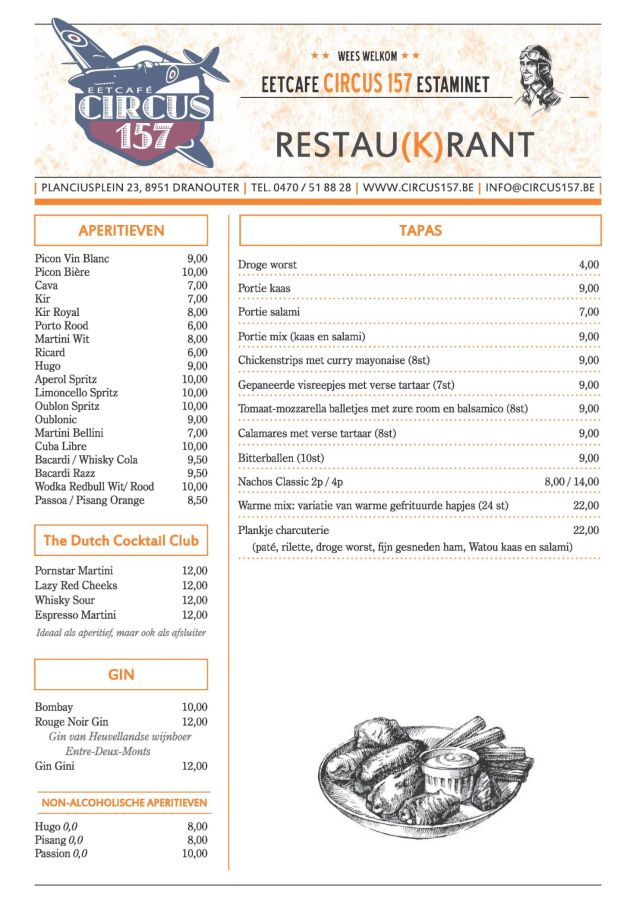 - Tijdens de maaltijd: keuze uit 1 glas huiswijn, 1 pintje Stella van het vat of 1 frisdrank